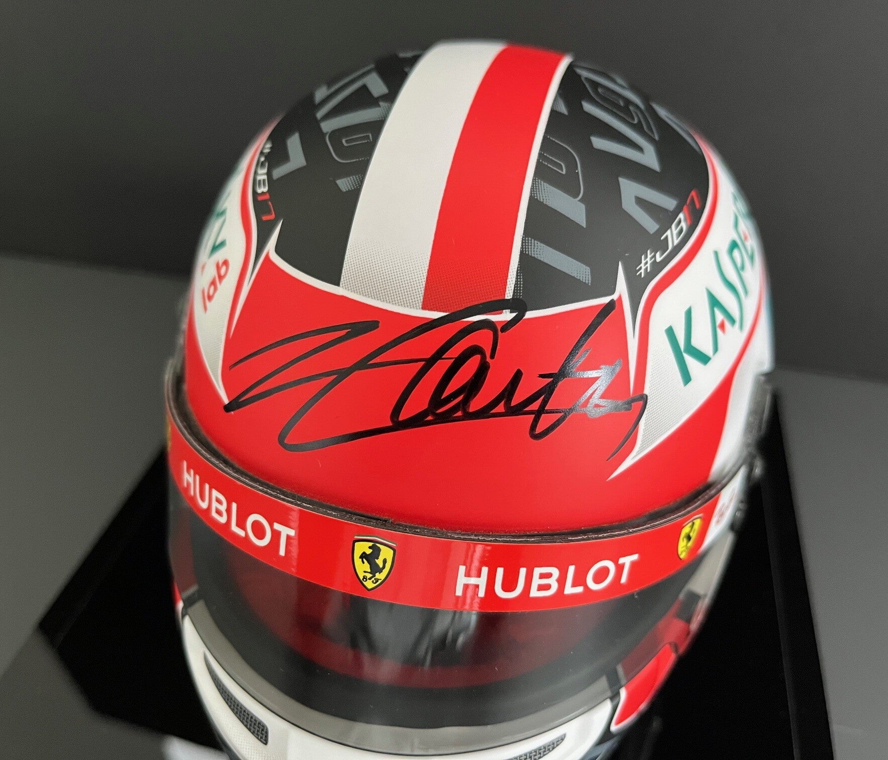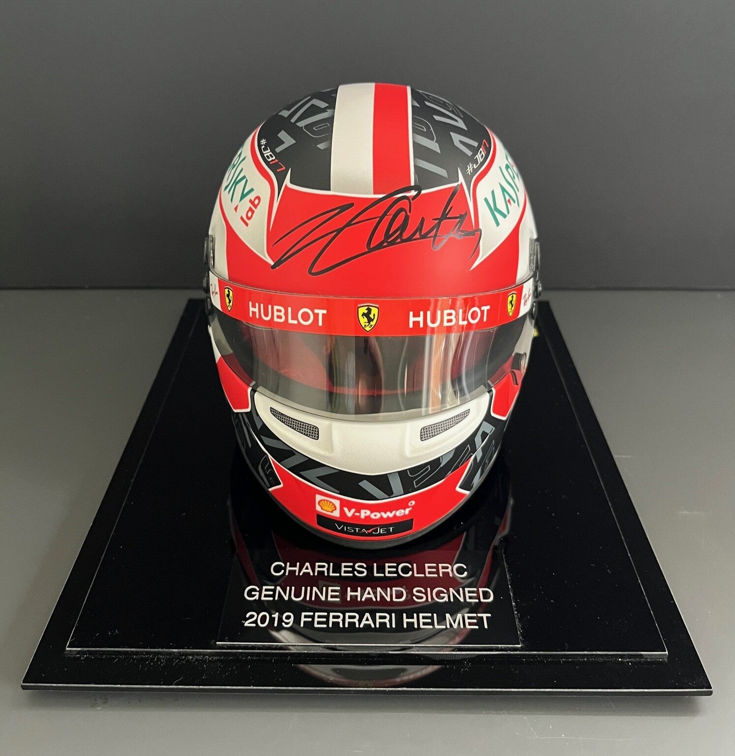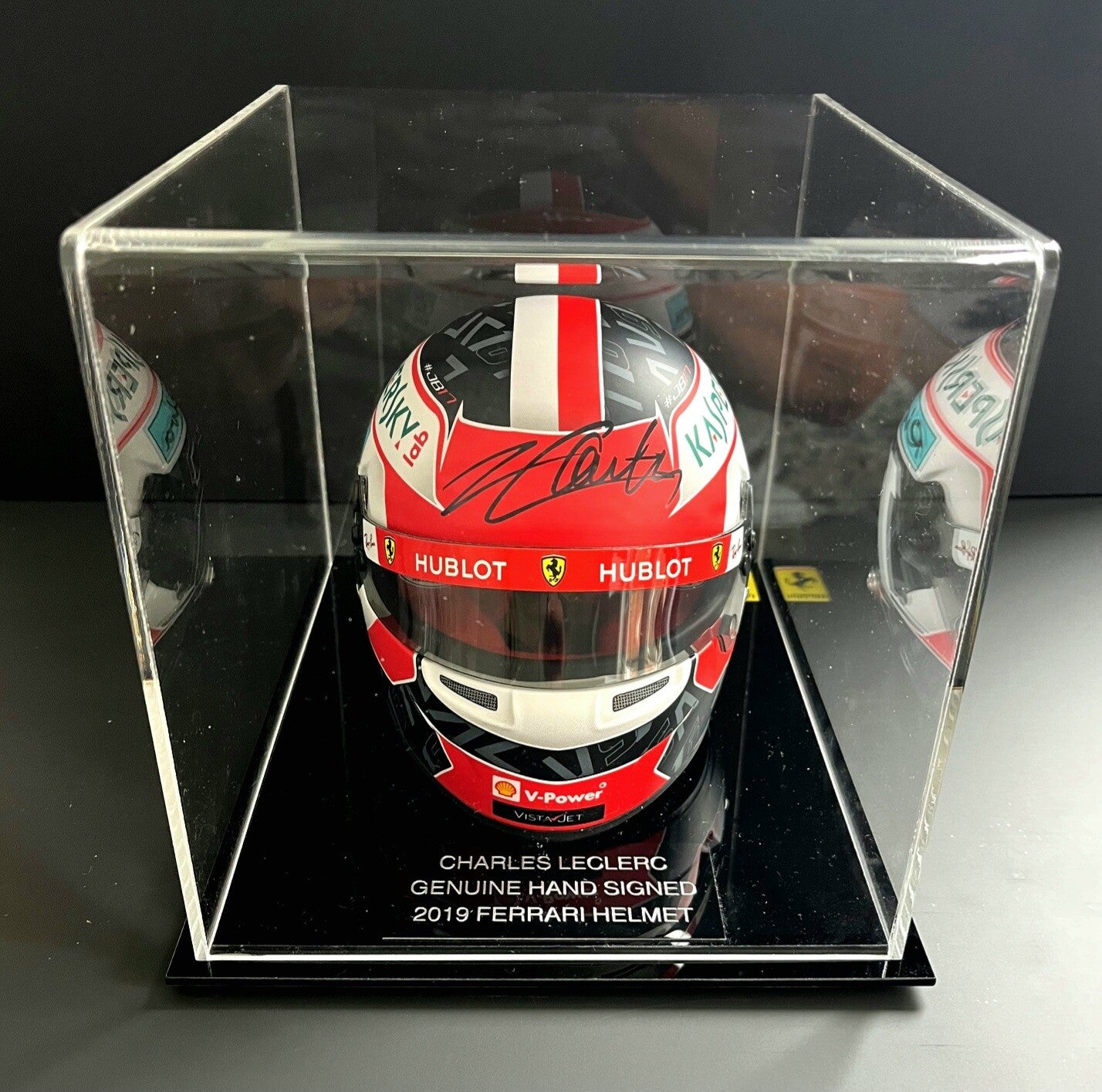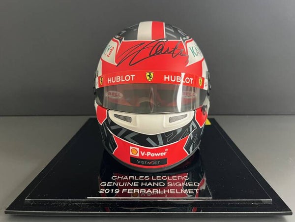 CHARLES LECLERC SIGNED - 1/2 SCALE HELMET - FERRARI 2019 - DISPLAY CASE - BRAND NEW