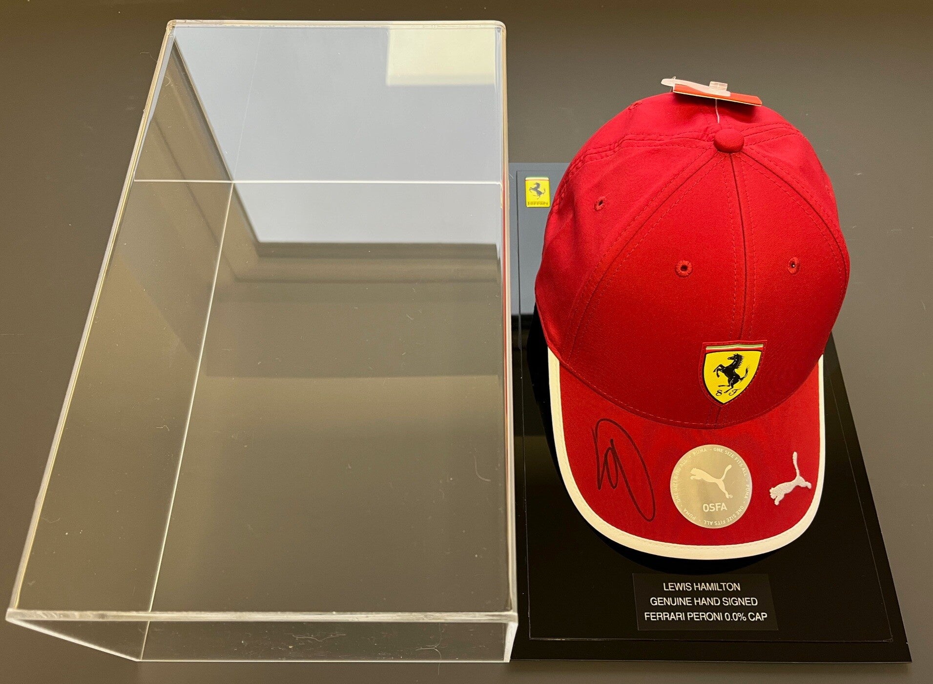 LEWIS HAMILTON SIGNED - FERRARI CAP - 2025 SEASON DARK RED - DISPLAY CASE - PERONI - EXCLUSIVE